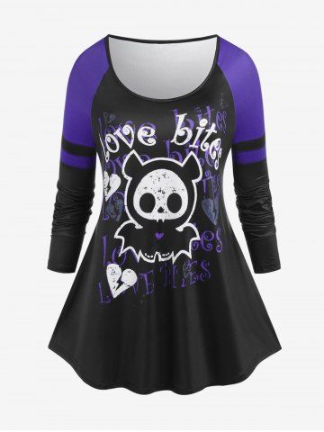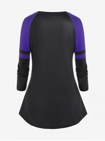 Halloween Cartoon Skull Letters Printed Colorblock Raglan Sleeves Tee - Purple - M | Us 10