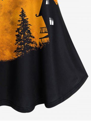Gothic Moon Tree House Wizard Bat Print Cold Shoulder Halloween Cami T-shirt - Black - Xs