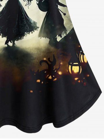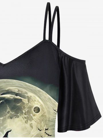 Halloween Wizard Lamp Moon Print Cold Shoulder Cami T-shirt - Black - 2x