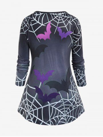 Halloween Bats Spider Web Printed Raglan Sleeves T-shirt - Black - 5x | Us 30-32