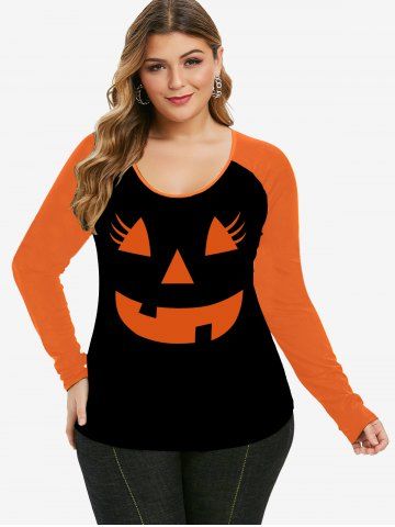 Halloween Cartoon Pattern Colorblock Raglan Sleeves Tee - Black - 3x | Us 22-24