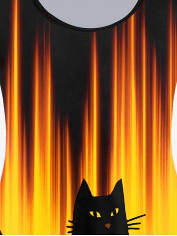 Halloween Pumpkin Cat Print T-shirt and Halloween High Rise Pumpkin Leggings