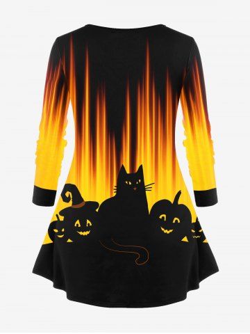 Halloween Long Sleeve Pumpkin Cat Print Tee