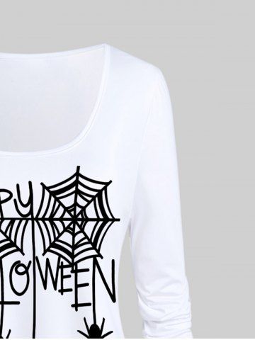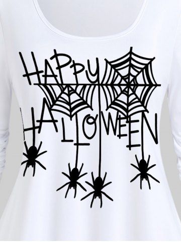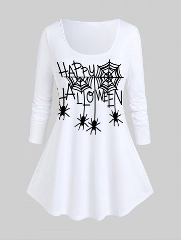 Halloween Long Sleeve Spiders Web Print T-shirt - White - 1x | Us 14-16