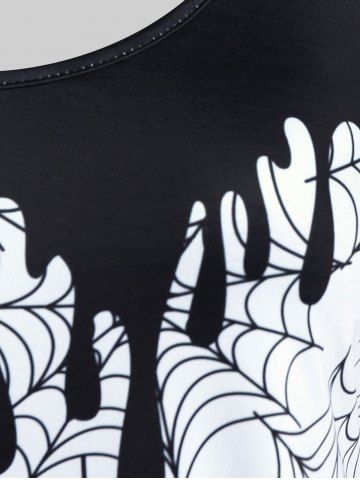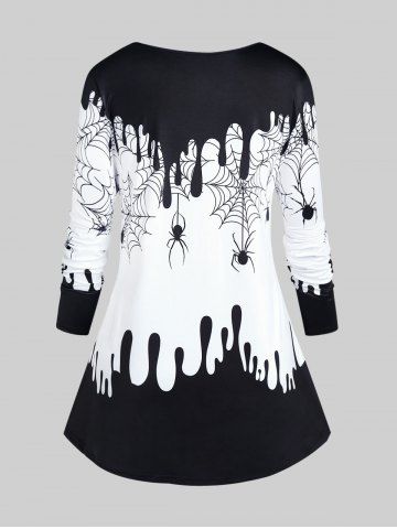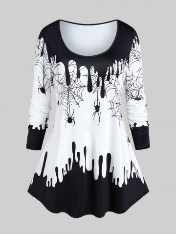 Halloween Paint Drop Blobs Spider Web Printed Long Sleeves Tee - White - 3x | Us 22-24