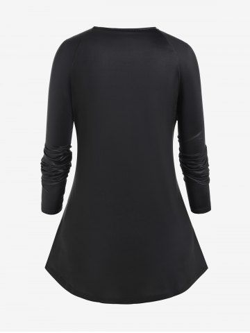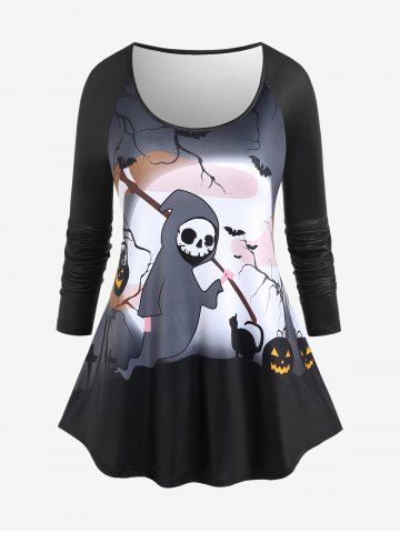 Halloween Pumpkin Bats Cat Skull Printed Raglan Sleeves Tee - Black - M | Us 10