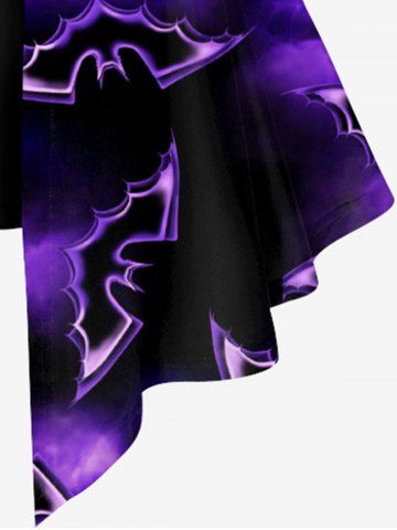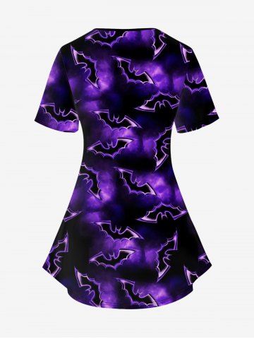 Plus Size 3D Galaxy Bat Tassel Print Halloween 2 in 1 T-shirt - Purple - 5x