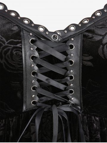 m*****y5Halloween Costume Plus Size Rose Flower Flocking Tie Dye Print Lace Up Lace-trim Cami Dress and Hooded Cape SetColor: BLACK Size: 5X | US 30-32bonne qualité...la grandeur est parfaite...je porte du XL mais dans votre boutique c'est du 1x et ça fait parfaitement...le suivi pour les commandes est excellent