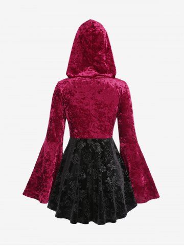 l*****t5Plus Size Grommets Lace Up Flocking Flower Flare Sleeves Hooded Velvet T-shirtColor: DEEP RED Size: 3X | US 22-24looks great, fast delivery,it will go well with the trousers I bought and it is true to size