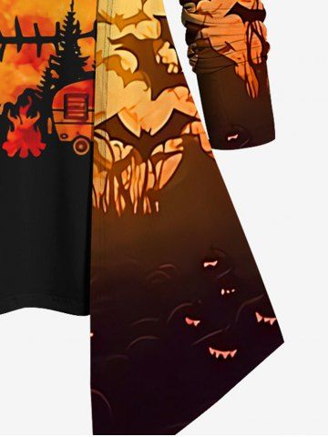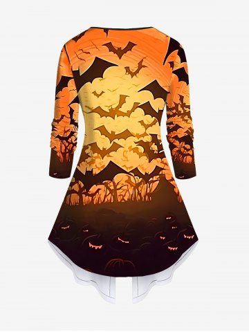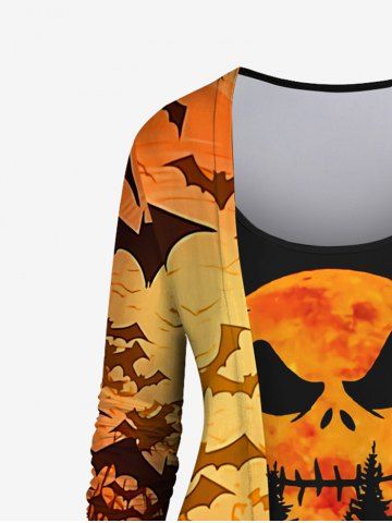 Plus Size Halloween Bat Pumpkin Skull Flame Print 2 In 1 Tee - Orange - 5x