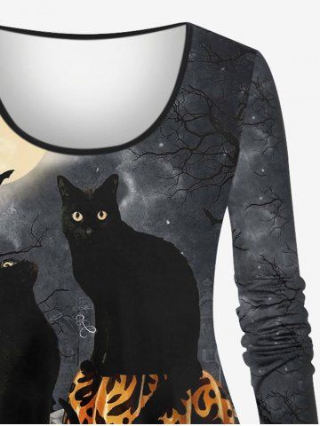 Plus Size Halloween Costume Cat Pumpkin Tree Moon Bat Print T-shirt - Black - 5x