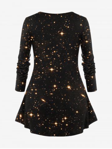 Plus Size Halloween Galaxy Devil Face Glitter Print T-shirt - Black - 2x
