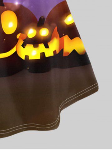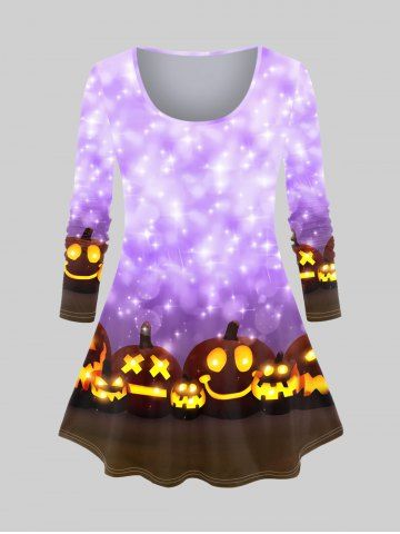 Plus Size Halloween Glitter Pumpkin Colorblock Print T-shirt - Light Purple - L