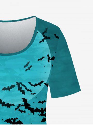 Halloween Tops > Plus Size Halloween Moon Bat Print Tee