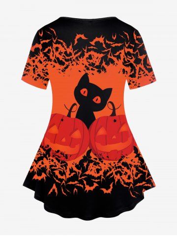 Halloween Tops > Plus Size Halloween Pumpkin Cat Bat Print Tee