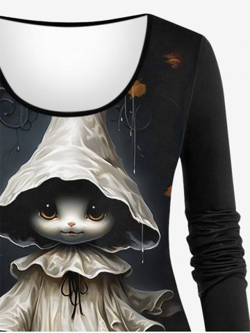 Plus Size Halloween Pumpkin Leaf Cute Ghost Print T-shirt - Black - M
