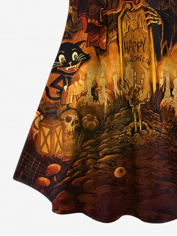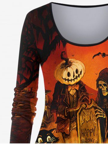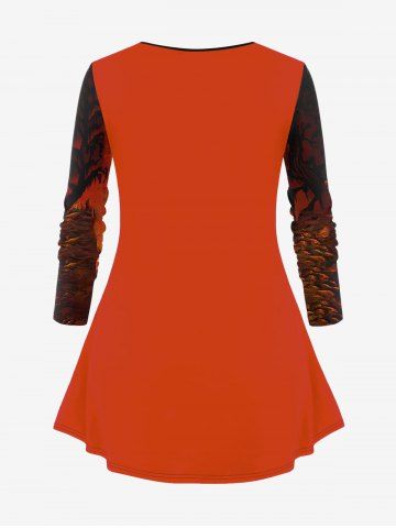Plus Size Halloween Skull Ghost Pumpkin Candle Flame Owl Bat Print T-shirt - Orange - 6x