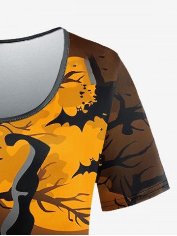 Plus Size Hat Pumpkin Moon Tree Owl Print Halloween T-shirt