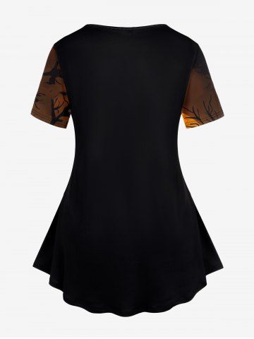 Plus Size Hat Pumpkin Moon Tree Owl Print Halloween T-shirt - Black - 2x