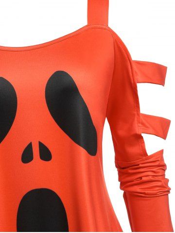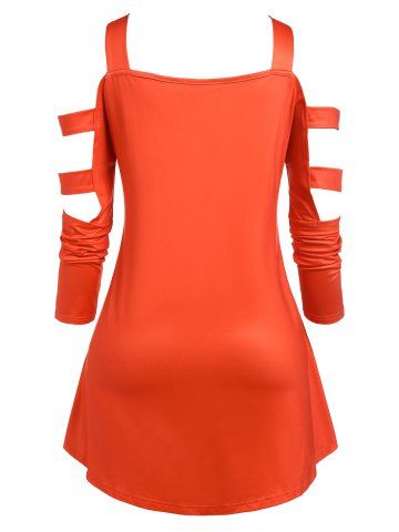 Plus Size Ladder Cutout Cold Shoulder Halloween T-shirt - Red - 3x