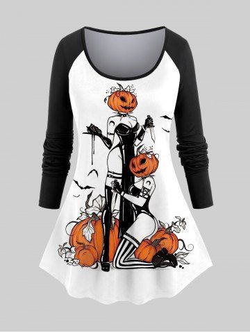 Halloween Tops > Plus Size Pumpkin Bat Sword Bunny Print Raglan Sleeves Halloween T-shirt