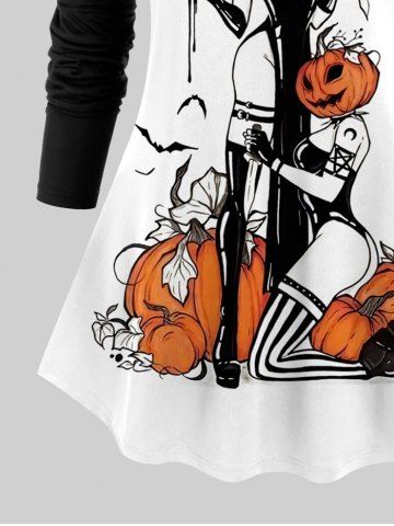 Plus Size Pumpkin Bat Sword Bunny Print Raglan Sleeves Halloween T-shirt - White - 5x