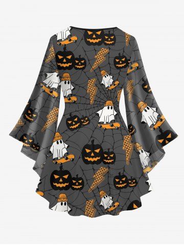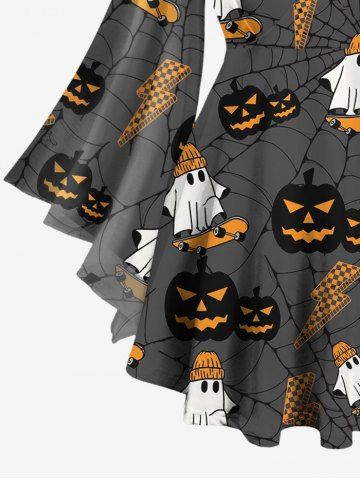 Plus Size Pumpkin Skateboard Ghost Lightning Spider Web Print Halloween Lattice T-shirt - Multi-a - L