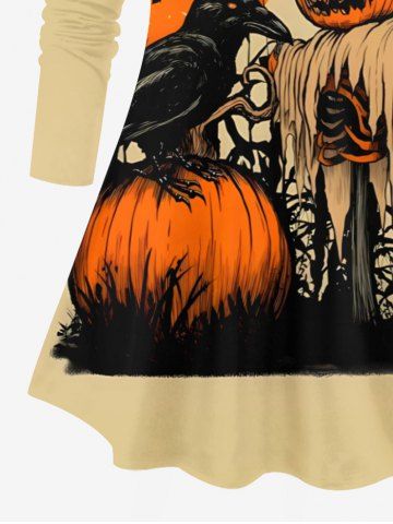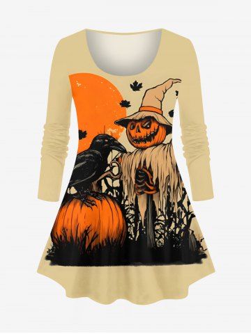 Plus Size Pumpkin Wizard Eagle Moon Maple Leaf Print Halloween T-shirt - Beige - 1x