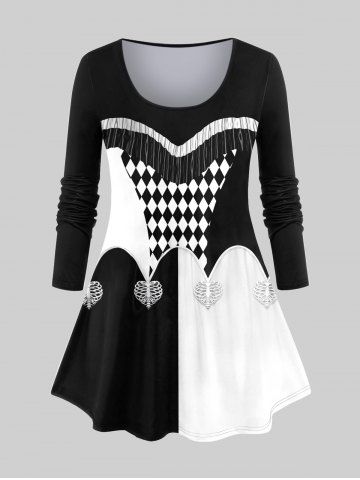 w*****t5Halloween Clown Costume Plus Size Colorblock Print T-shirt and Leggings Outfit Jester LadyColor: BLACKThis outfit is perfection, the only issue is with the long sleeves size 2X is a little tight. Incentive to loose 5 lbs lol . I’m keeping it. nThank you Rose Gal , you’re very busy making popular items for you clients, keep up the great works from a Gal in Canada 🇨🇦