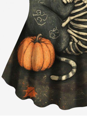Halloween Tops > Plus Size Skeleton Cat Pumpkin Leaf Print Halloween Women T-shirt