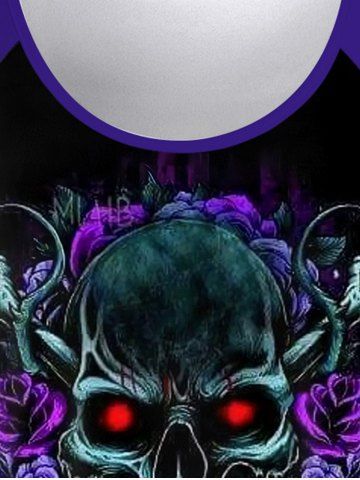 Halloween Plus Size Skull Flower Print T-shirt - Black - 2x