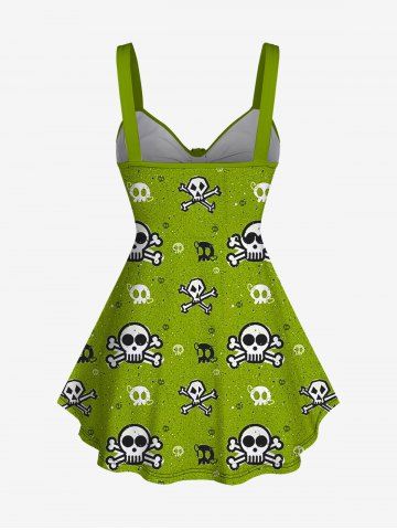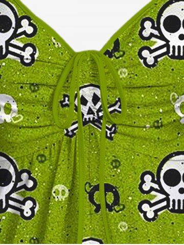 Halloween Plus Size Skull Print Cinched Tank Top - Light Green - 2x