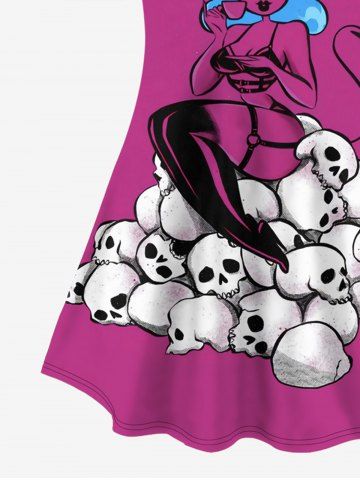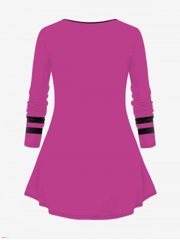 Plus Size Skulls Bunny Printed Strip Sleeves Halloween T-shirt - Light Pink - 4x