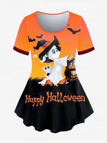 Plus Size Witch Bat Print Halloween Tee - Dark Orange - L | Us 12