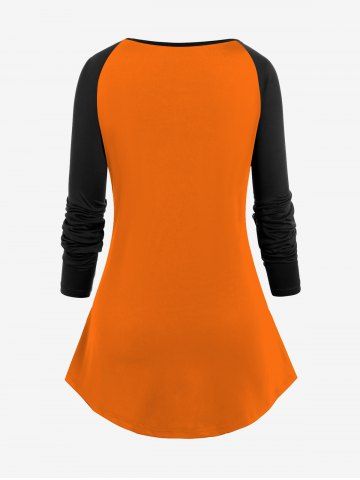 Plus Size Wizard Bat Pumpkin Cake Print Halloween Raglan Sleeves T-shirt - Orange - M