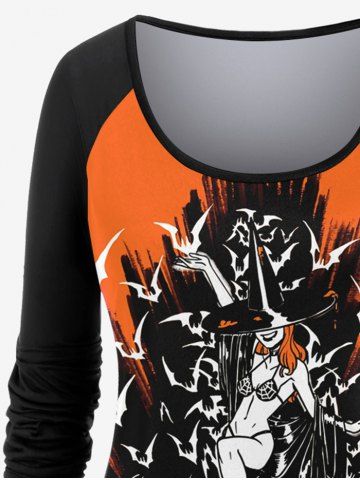 Halloween Tops > Plus Size Wizard Bat Pumpkin Cake Print Halloween Raglan Sleeves T-shirt