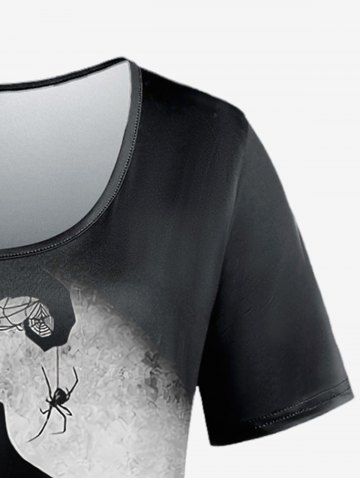 Halloween Plus Size Wizard Spider Skull Cat Print Short Sleeves T-shirt - Black - L