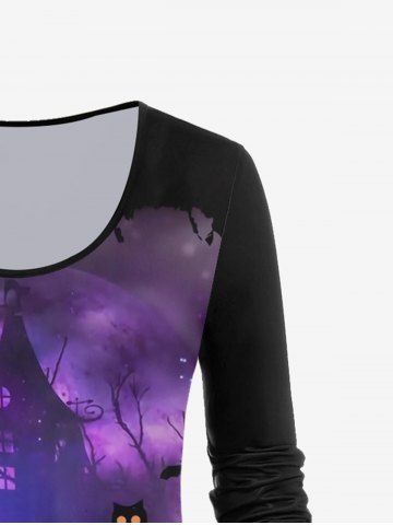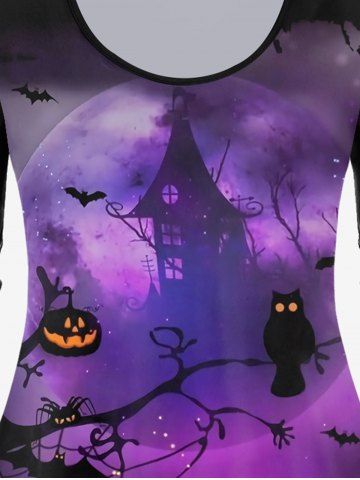 Pumpkin Castle Bat Print Halloween T-shirt - Black - 1x | Us 14-16