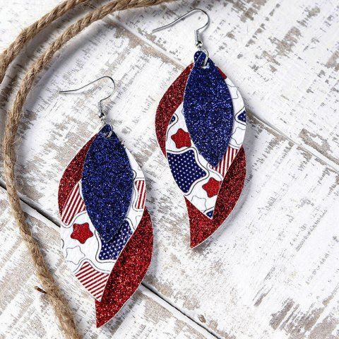 USA Independence Day Sparkle PU Leaf Layered Dangle Earrings - Multi