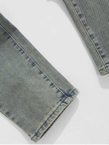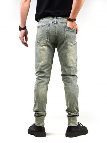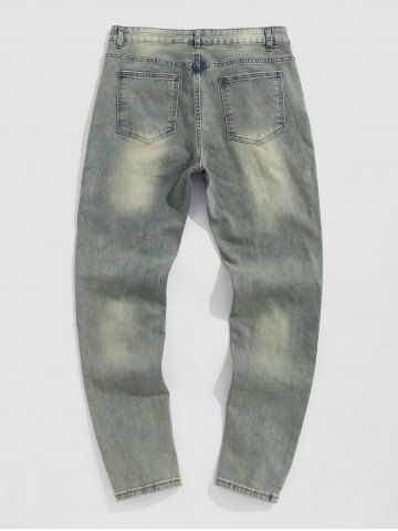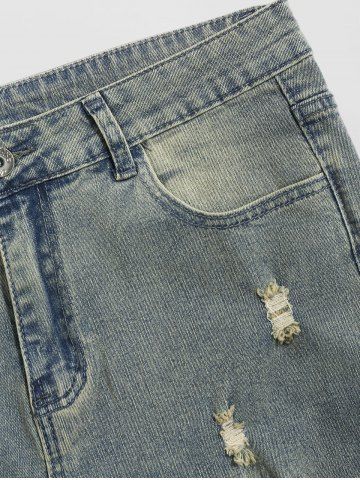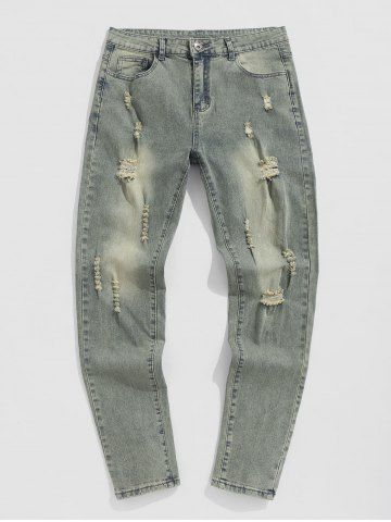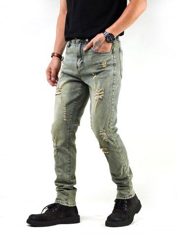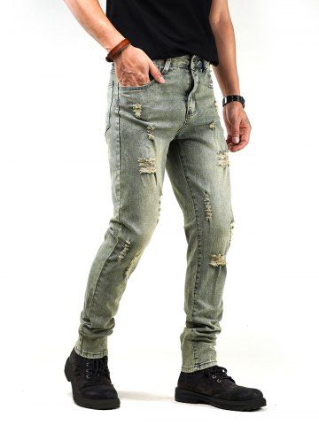Distressed Bleach Wash Jeans - Light Blue - 34