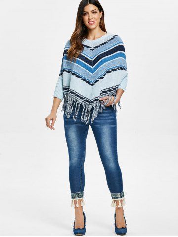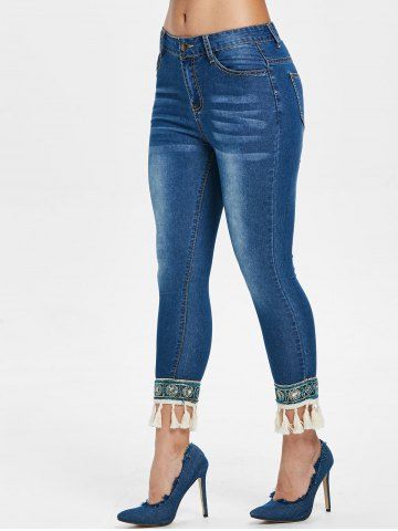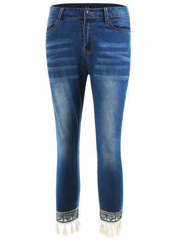 Tassel Hem Capri Jeans - Denim Dark Blue - Xl