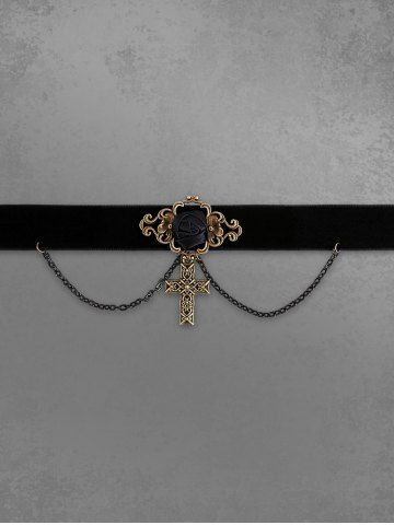 a*****o5Grommets Lace-up Colorblock Sleeveless Dress And Rose Cross Pendant Choker Necklace Gothic OutfitColor: BLACKThis dress is beautiful. The material drapes so well and it feels awesome.