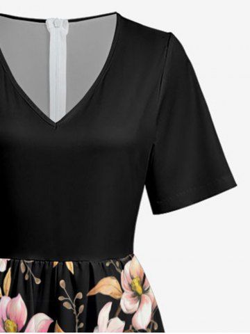 Flower Leaf Branch Print Hawaii Wide Leg Jumpsuit - Black - 2xl
