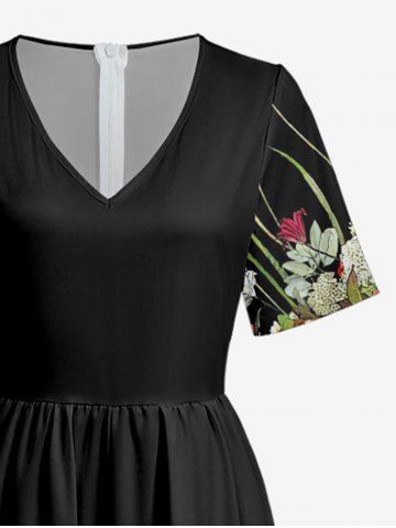 Flower Leaf Plant Print Hawaii Wide Leg Jumpsuit - Black - 3xl