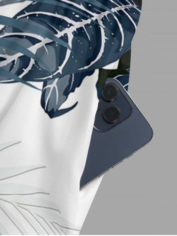 Flower Tropical Leaf Print V Neck Hawaii Wide Leg Jumpsuit - Deep Blue - Xs