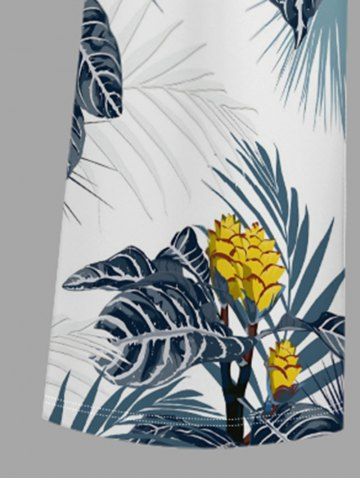 Flower Tropical Leaf Print V Neck Hawaii Wide Leg Jumpsuit - Deep Blue - L