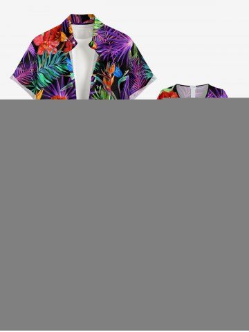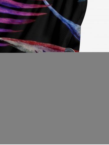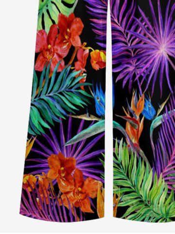 Flowers Tropical Leaf Print V Neck Hawaii Wide Leg Jumpsuit - Concord - S