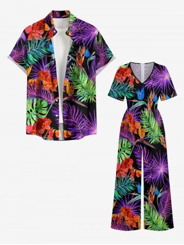 Flowers Tropical Leaf Print V Neck Hawaii Wide Leg Jumpsuit - Concord - Xl