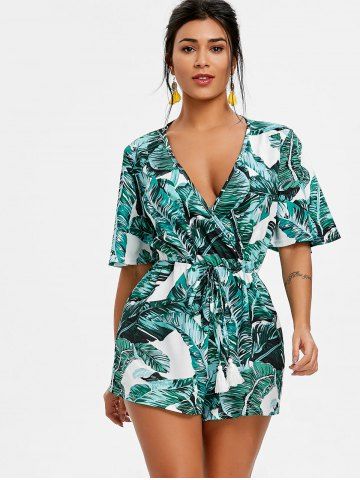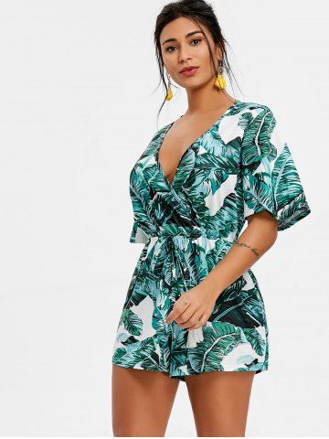Jumpsuits & Rompers > Low Cut Leaf Print Romper