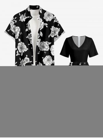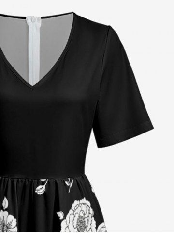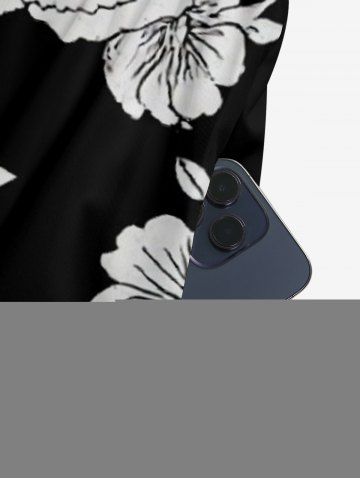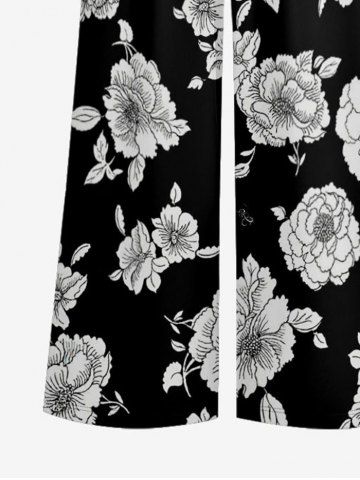 Plus Size Flowers Leaf Print V Neck Hawaii Wide Leg Jumpsuit - Black - S